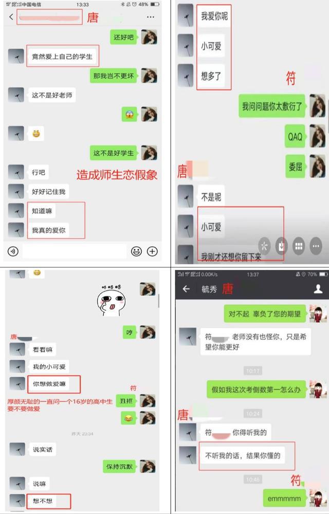 高二时,夏梦看见唐某某多次叫符晞去办公室,关上窗帘和大门。办公室里有好几位老师,有一回夏梦的班主任发现门被锁住,她打了数次电话,唐某某才来开锁,解释正和学生谈心。不过班主任和围观的同学们没有看清里面的女生是谁。