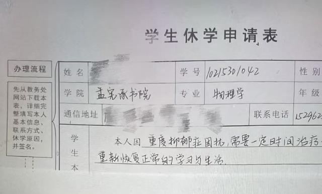 女孩的休学申请和去医院诊疗的回执 图源:举报资料