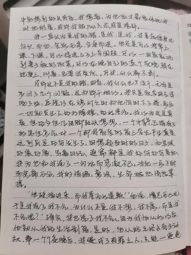 我在符晞的日记里找到了这些心理的痕迹。2020年她在看完《房思琪的初恋乐园》后回溯了自己的曾经,写下:“我成了有罪之人,只能一遍遍告诉自己,我爱他。”