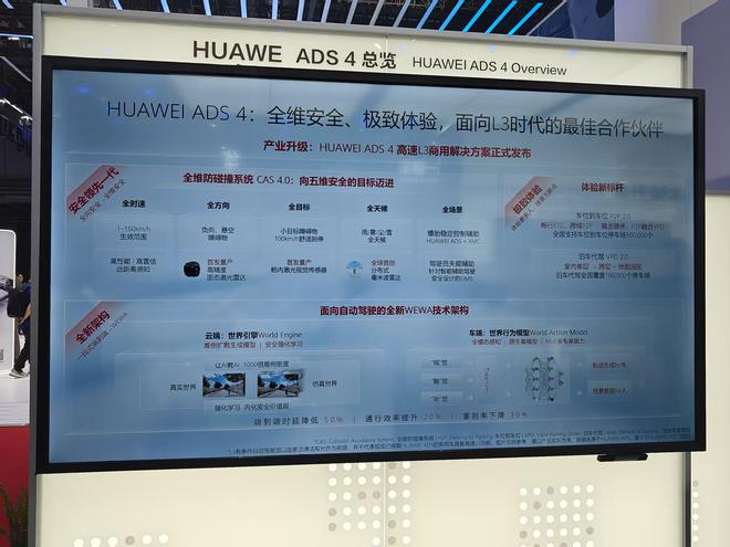 红星资本局在展台看到,ADS4资料的下方,有小字强调称,“L3有条件自动驾驶须以国家法律法规允许为前提,并不代表现已搭载HUAWEI ADS的乘用车具备高速L3功能。”