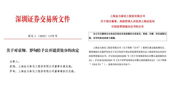 红星资本局梳理发现,因未履行增持承诺,2022年10月20日,袁翔、罗甸分别被上海证监局出具警示函,又双双于2022年12月21日被深交所公开谴责。深交所在《关于对袁翔、罗甸给予公开谴责处分的决定》中提到:根据金力泰前期对本所关注函的回复,截至2021年12月7日,袁翔拥有存款7000万元、罗甸拥有存款8000万元,当事人表示有能力履行增持计划,但二人在第二次延期增持计划届满后仍未进行增持,市场影响恶劣。