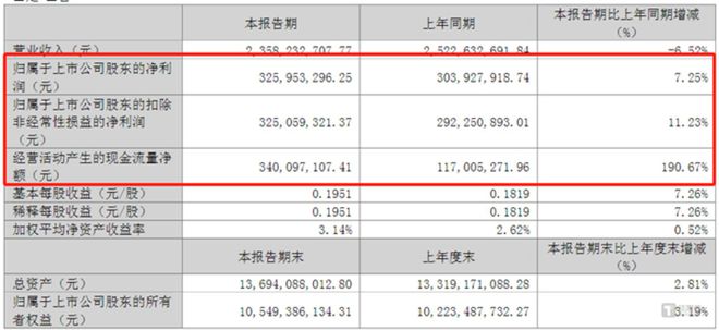 财报显示,以岭药业归母净利润同比增长7.25%,扣非后归母净利润同比大增11.23%。这是8个季度以来净利润增速转正,且扣非净利润实现两位数增长。