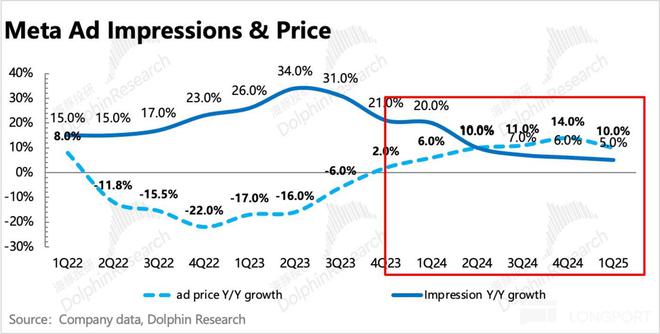 2. 从量价变动看,Q1 或受益 TT ban:对于广告收入的展示量和单价增速两个驱动,海豚君主要看增速边际变化趋势。一般而言,展示量的阀门握在龙头平台手中,收放可以相对主动。但广告单价增速,则会与宏观环境和竞争息息相关。