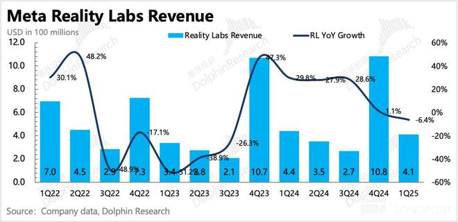 一季度 RL 业务的经营亏损加大,近期传言 Meta 有意继续优化 RL 实验室。海豚君认为,短中期实现持续稳定盈利基本难以看到。因此随着后续公司持续对相关团队优化,压缩投入,可能才会加速扭亏。