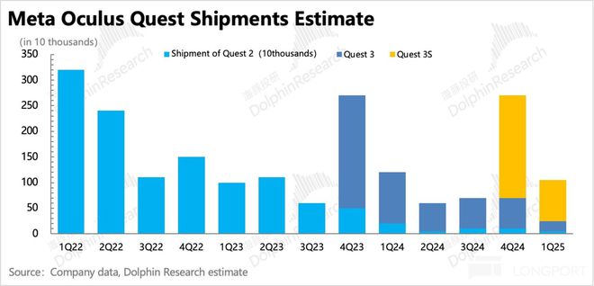 VR 业务没太多可讨论的,主要体现的是购物季 Quest 3S 热卖之后,市场需求淡季的特征。一季度收入 4.12 亿,同比下滑 6%,Quest 3S 在购物季的表现并未延续到一季度。