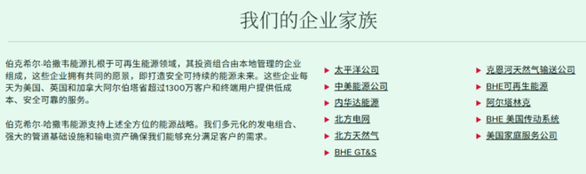 BHE 通过多个子公司运营,主要业务板块包括电力公用事业、天然气管道、可再生能源及房地产服务,覆盖美国、英国及加拿大市场。