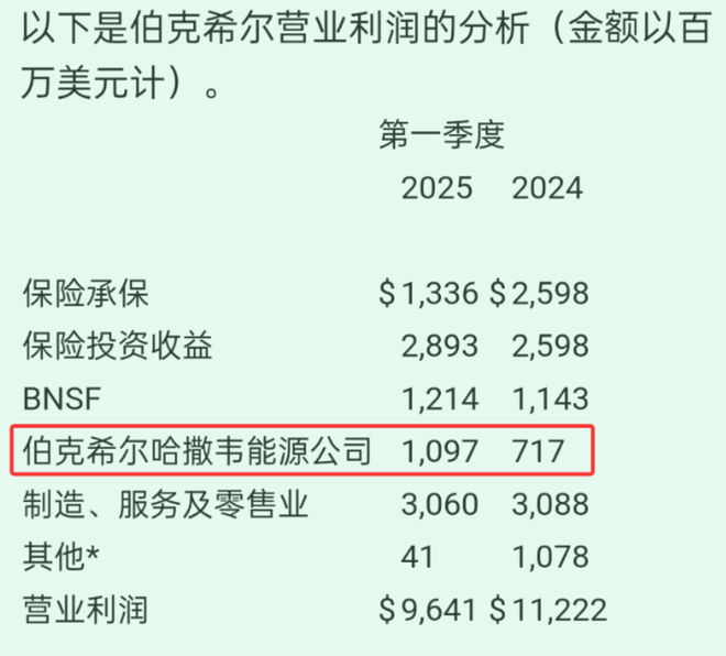 在刚刚过去的2025年第一季度,伯克希尔·哈撒韦能源公司为集团贡献了10.97亿美元的营业利润,比去年同期增长了近53%,是所有业务板块中增速最快的一项业务。