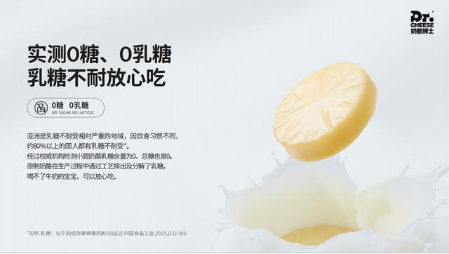 奶酪博士坚持零添加配方,低盐高钙小圆奶酪配料表中只有干酪、一丢丢盐、菌种、凝乳酶,经过权威机构检测其乳糖含量为0、总糖也是0,符合儿童干酪标准,乳糖不耐受宝宝也能安心食用。