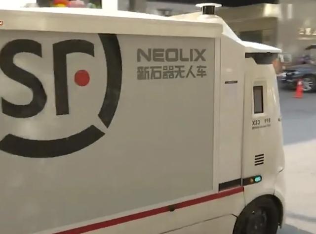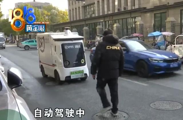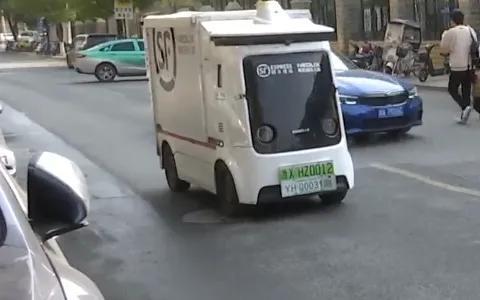 快递无人车在记者前减速停车