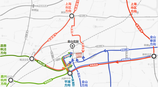 任意位置到达上海金山北站后,可以选择2种方式直达乐园:一是网约车或出租车,目的地乐缤路或乐纷路;二是搭乘公共交通(待定)到达乐缤路或乐纷路。