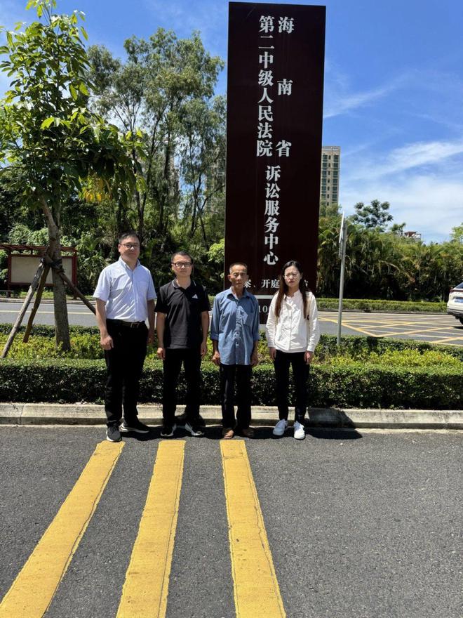 杨成杰老人(左三)已向海南第二中院提交国家赔偿申请