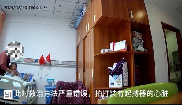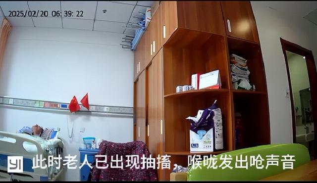 平躺在床上的老人喉咙里发出呛声(监控画面)