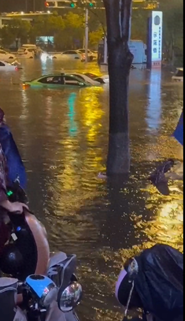 另一位网友发视频称,驾车被困在积水中进退维谷:“哎呀,天呐!这咋弄?”