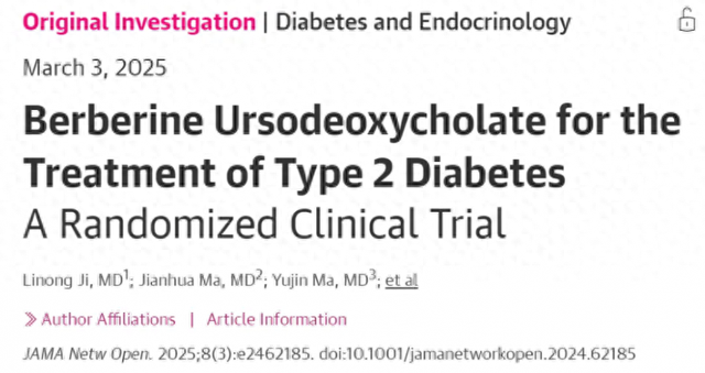 Ji, Linong, et al. "Berberine ursodeoxycholate for the treatment of type 2 diabetes: a randomized clinical trial." JAMA Network Open 8.3 (2025): e2462185-e2462185.