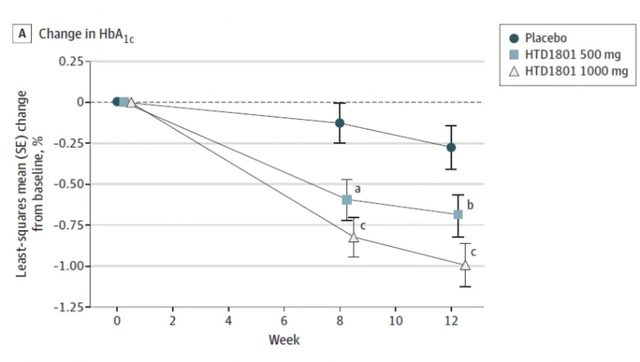 公开资料显示,这项覆盖中国14家医疗中心、129名患者的临床试验显示:每日服用1000毫克UDCA的患者,12周后糖化血红蛋白(HbA1c)平均降低1%,远超安慰剂组的0.3%,且55.9%的患者血糖达标(HbA1c<7%),是安慰剂组的3.6倍。