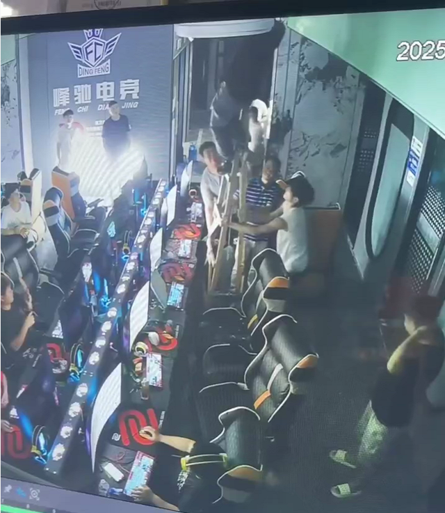 电竞玩家玩得正起兴,天花板咋破裂挂个人?店家:空调维修工意外踩断副龙骨