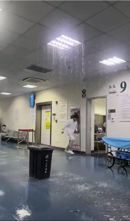 武汉大学人民医院回应“外面大雨里面小雨”: 医疗秩序没受漏雨影响