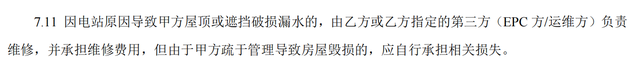 记者看到,租赁合同第7项约定,因电站原因导致甲方(齐先生)屋顶或遮挡破损漏水的,由乙方(昱晟鼎行)或乙方指定的第三方(运维方北京尚方智慧清洁能源科技有限公司,以下简称尚方智慧)负责维修,并承担维修费用。