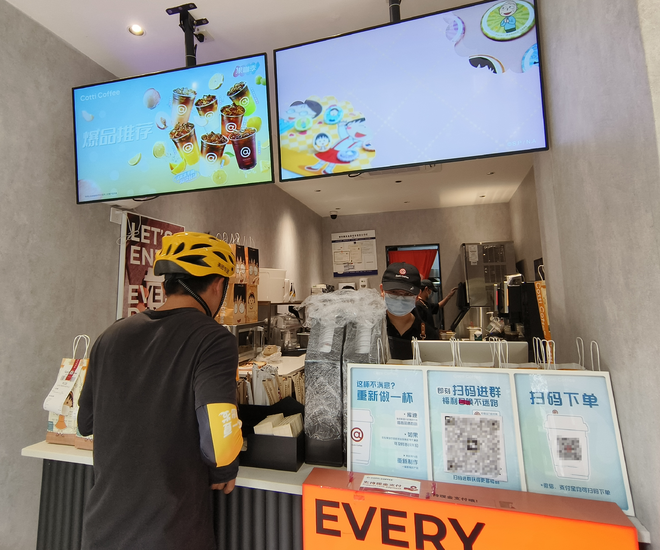 该加盟商称,在外卖大战前,这家店的日均订单为500-600杯,其中有100多杯是从外卖渠道出去的;而现在,光是外卖渠道的订单量已升至300多杯。