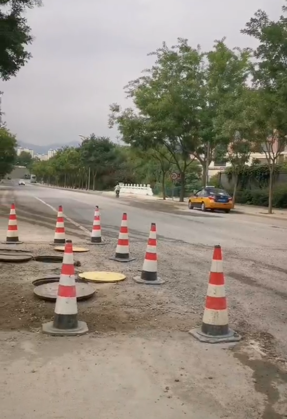 亲属提供的一段40秒视频显示,现场是一段下坡路,公路一侧还有一辆建筑用的手推车,路面上有两个打开的窨井盖,那段坑洼处是骑车必经之处,整个施工区域疑未封闭。