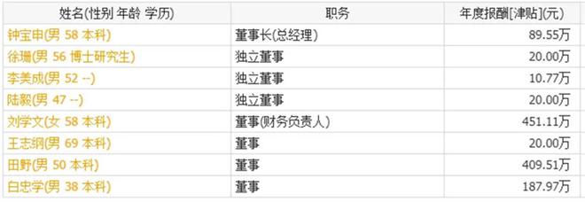 其中,钟宝申、刘学文、田野为上一届董事会成员,这三人也是公司的老人。