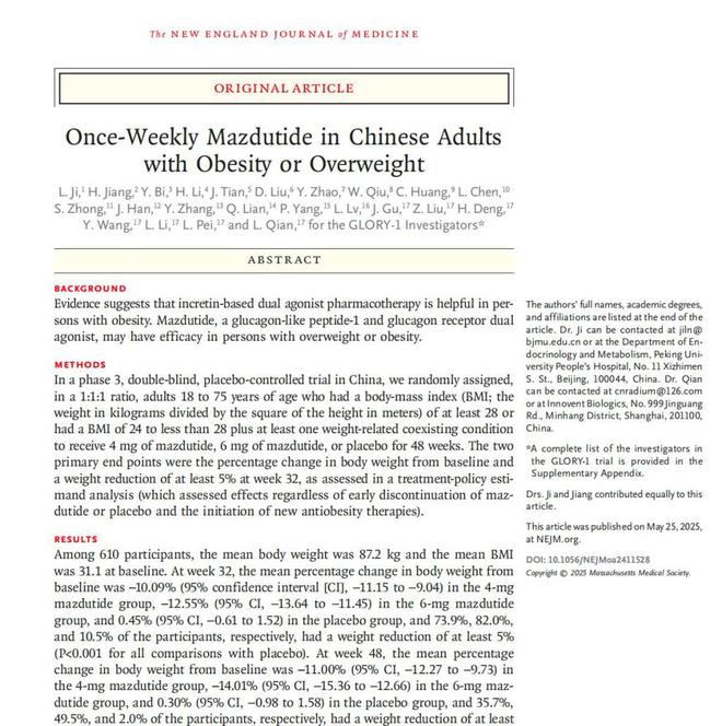 我国减重创新药物研究成果登顶《新英格兰医学杂志》