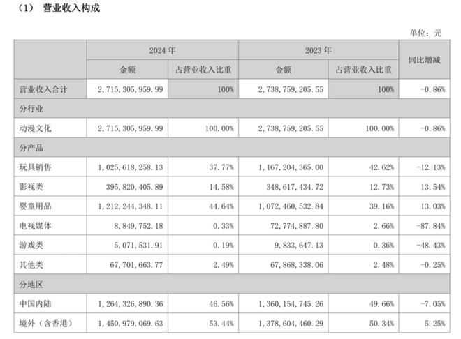 喜羊羊AI出品公司奥飞娱乐,2024年玩具业务下滑严重