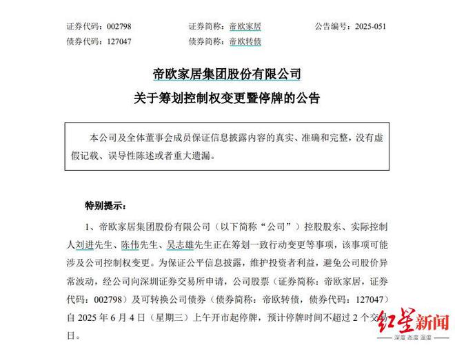 今起停牌!四川卫浴龙头帝欧家居,筹划控制权变更