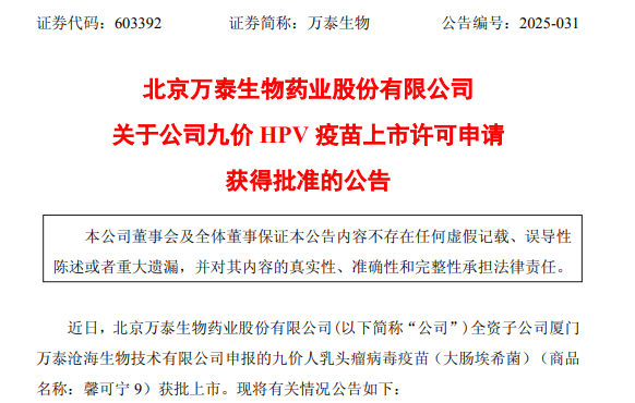 首个国产九价HPV疫苗获批上市,万泰生物能否借此业绩“破局”?