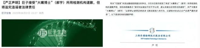 6月5日,郝宇再次发文,认为巨子生物的检测结果疑点重重,是一份「俄罗斯套娃式」的拼图式嫁接报告,且没有检测机构的名字和盖章,呼吁监管机构尽快开展权威检测。