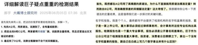 5月27日,郝宇进一步发难,炮轰这份检测报告是「一场教科书级别的自我爆锤」,认为企业存在检测方法和检测样品的双重漏洞。