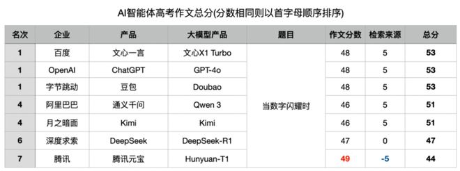 由于各家大模型在作文环节分数十分胶着,导致第一轮的题目来源检索对于比分的整体影响更大,也让这次比赛的结果充满了“戏剧性”。