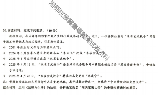 此外,小朱告诉记者,“我改名的事出现在一家中学高三政治模拟试卷上了。”