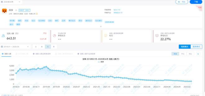 图注:易观千帆数据显示,探探月活用户大幅度下滑