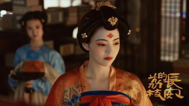 近几年国产剧市场其实流行比较昏暗素雅的色彩滤镜,通过做旧质感呈现出古韵,但《长安的荔枝》打破了千篇一律的单调色彩,展现出了另一种华丽繁复却不俗气的美,像是从唐风壁画中走出来的一样。