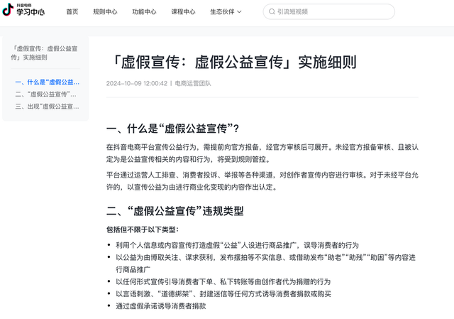 抖音电商品质保护中心相关负责人表示,为维护平台生态健康,保护消费者合法权益,抖音电商对利用公益虚假宣传牟利的行为零容忍。