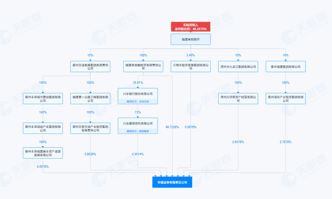 天眼查APP显示,兴业银行通过兴业国际信托,间接持有华福证券4.35%的股权。此外,兴业银行控股兴业国际信托,持股比例为73%。