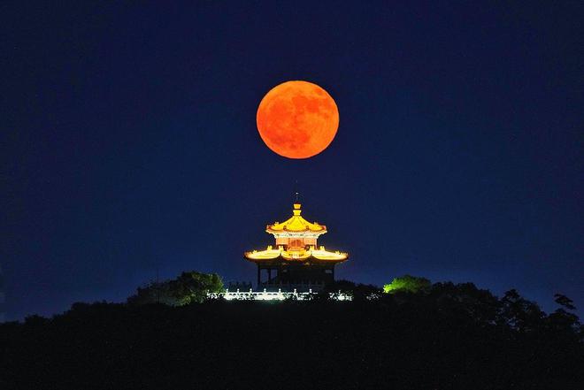 据英国广播公司报道,11 日的 “草莓满月” 出现在 2006 年以来天空中位置最低的地方,月球与地平面的夹角不到 21 度,这种现象每 18.6 年发生一次 ,下一次要到 2043 年。这枚低悬的绯红玉盘,既以科学规律标记着天宇坐标,亦以诗意别称温柔呼应着大地的物候流转,邀人举目共赏宇宙之序与自然之美。