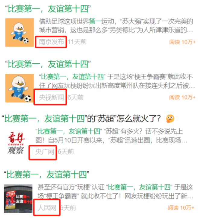 5月28日,官媒南京发布推送了一条推文《比赛第一,友谊第十四》,突破官媒一贯严肃风格的同时,也拉开了“地域梗”病毒式传播的序幕。随后,人民日报、央视新闻、央广网、人民网等央媒集体发声点赞,扩大了传播声量,也进一步鼓励了这场“梗王争霸赛”。