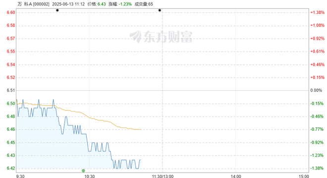 从二级市场来看,万科股价在今日开盘后整体呈震荡下跌态势,早间最大跌幅在1.38%。截至发稿,跌1.23%,报6.43元/股,总市值767.1亿元。