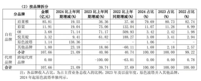 2021年,珀莱雅的年报里首次单独列出彩棠;到了2024年,彩棠已经成了集团第二大收入来源,全年营收11.91亿元,同比增长19.04%。