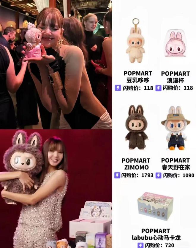 尤其是在泰国公主将Labubu 挂在爱马仕包上,足球巨星贝克汉姆在社交平台分享他的小女儿送他Labubu玩偶,还有韩国女团 BLACKPINK 成员 Lisa “晒娃”之后,一步步的明星效应与社交媒体裂变让Labubu成为“奢侈品 + 潮玩” 的代表性产品。大批粉丝开始模仿、大众随即跟风。