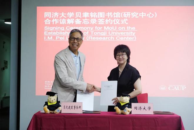 1981年,贝聿铭首次访问同济大学,在文远楼为师生演讲。四十四年后,在同一座楼里,同济大学建筑与城市规划学院与贝氏建筑事... 1981年,贝聿铭首次访问同济大学,在文远楼为师生演讲。四十四年后,在同一座楼里,同济大学建筑与城市规划学院与贝氏建筑事务所达成合作,宣布共同设立“同济大学贝聿铭图书馆(研究中心)”。6月17日,贝聿铭先生的三子、贝氏建筑事务所董事长贝礼中亲临现场出席签约活动。