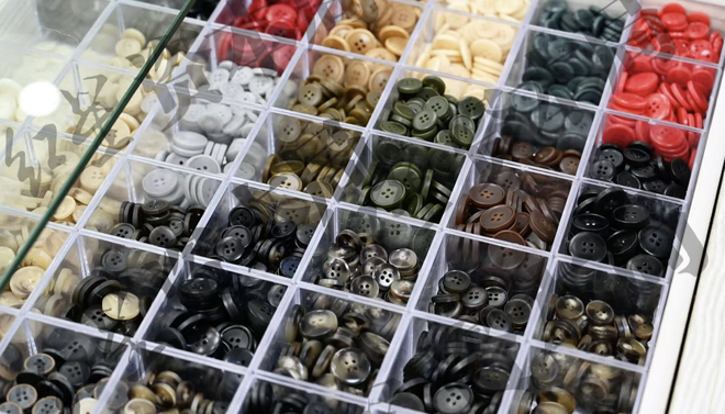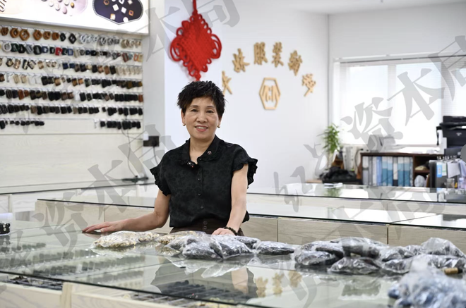 从1986年开始,她先后做过珠片、皮鞋等品类的生意,但最后还是选择回归服装辅料。其中,纽扣是服装辅料中的大类,在章华妹的商铺里,有上千种不同材质、颜色、尺寸的纽扣。