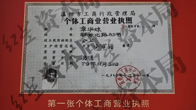 章华妹还记得,当时,温州有相关的办公室,一旦遇上,摆摊售卖的小商品都有可能被没收。到1979年,有工商局的人来宣传,他们可以去申领营业执照。