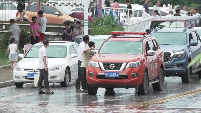 2025年6月17日,广东肇庆,怀集县发生洪灾,汽车被洪水阻挡在街道上。
