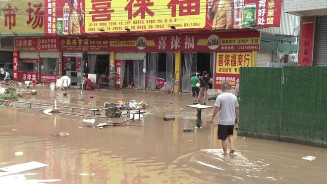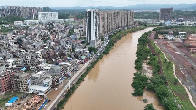 2025年6月17日,广东肇庆,怀集县发生洪灾,市内河水上涨。(视频截图)