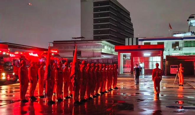6月18日凌晨1时21分,救援队伍抵达怀集消防救援大队后,立即与当地指挥部对接,迅速展开救援行动。央视新闻客户端 图