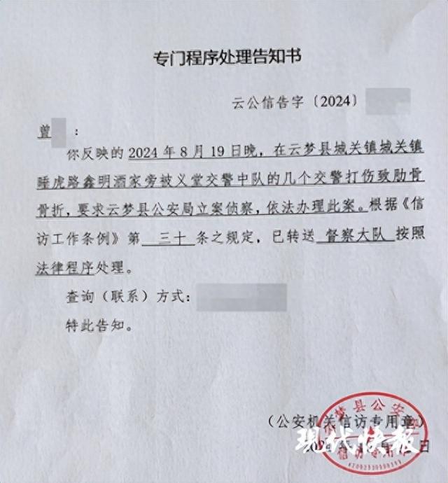 湖北一男子称被交警打断9根肋骨未立案,警方回应