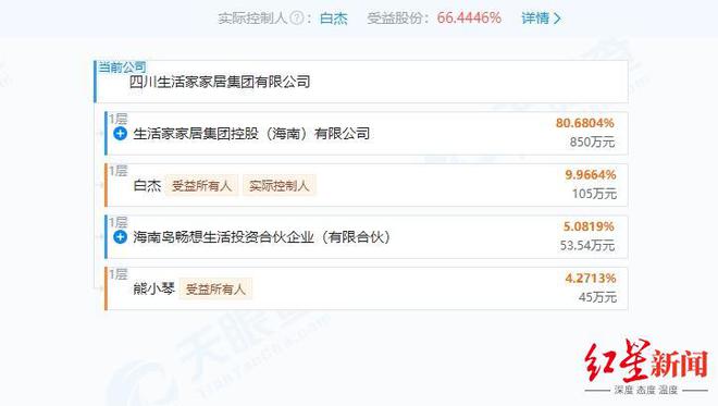 股权穿透信息显示,在本次交易前,生活家由控股股东生活家家居集团控股(海南)有限公司(白杰、熊小琴共同持股)持股80.68%,以及海南悦家畅想投资合伙企业(有限合伙)、海南岛畅想生活投资合伙企业(有限合伙)、熊小琴、白杰共同持股。
